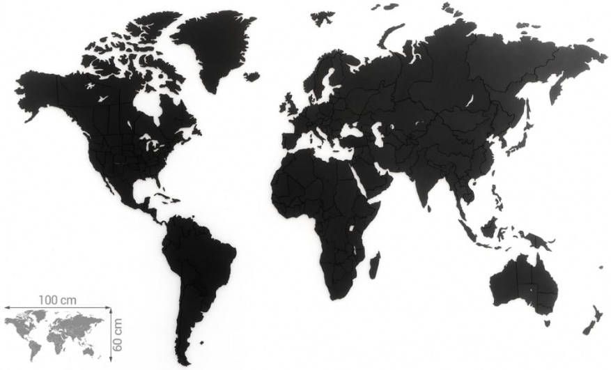 MiMi Innovations True Puzzel Houten Wereldkaart Zwart 100x60 cm